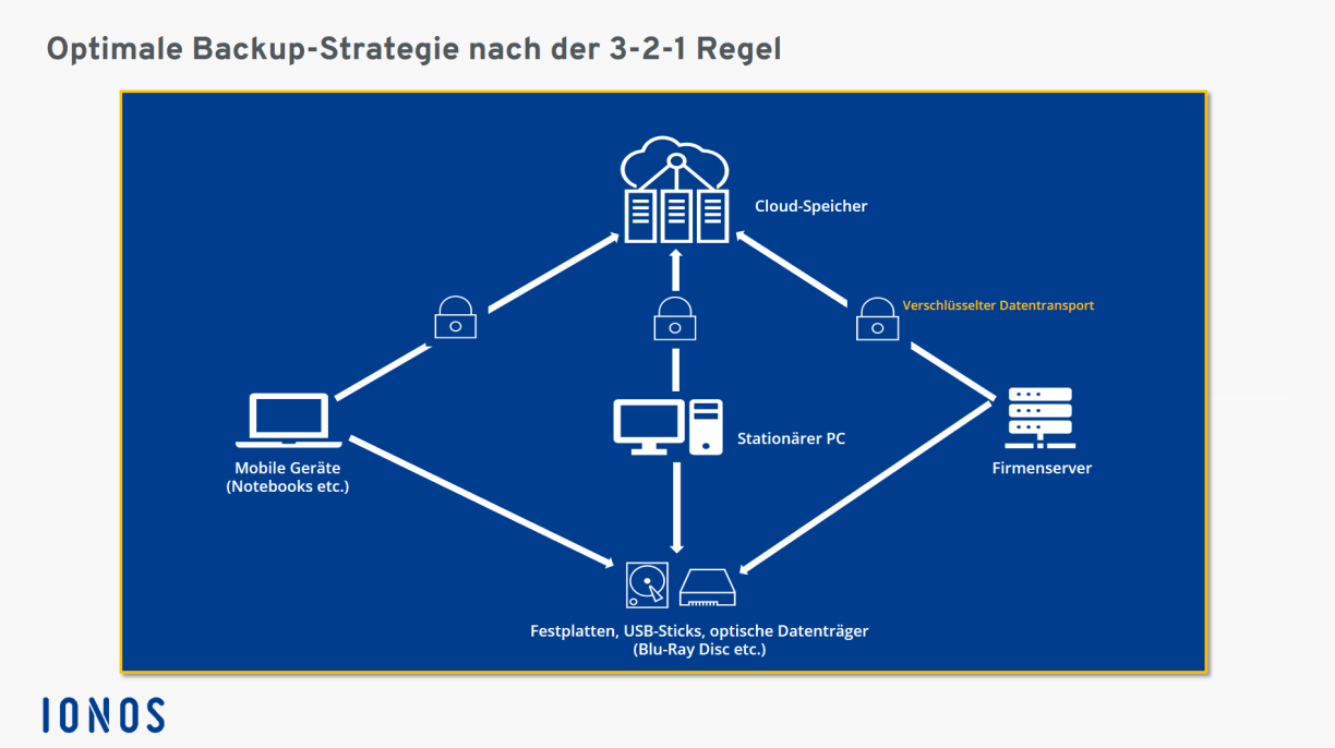 Der zweite große Punkt der Veranstaltung widmete sich der Thematik sichere Daten. Dabei empfehlen wir eine Verschlüsselung und Aufbewahrung in der 3-2-1-Methode: